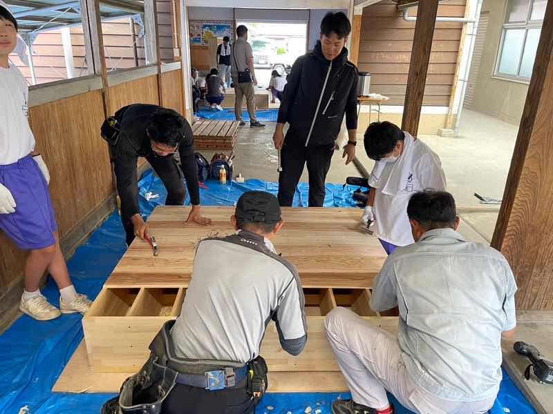 奉仕活動 2023/08/21 先日、岡山県建設労働組合の奉仕活動として、倉敷西中学校へ行ってきました! 倉敷市議会議員の山畑滝男さんもいらっしゃいました。 みんなで協力して製作中~ 何を作っているのでしょうか…? 靴箱が完成しました!はい~ このような奉仕活動を通して、地域の子供たちと関わる良い機会でした。 これから何年も世代を超えて使っていくと思うので、大切に使ってくれたら嬉しいですね(^ー^) みなさん、お疲れ様でした!
